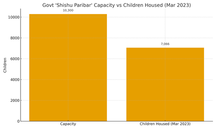 Figure 2: Government Shishu Paribar Capacity vs Children Housed (2023).